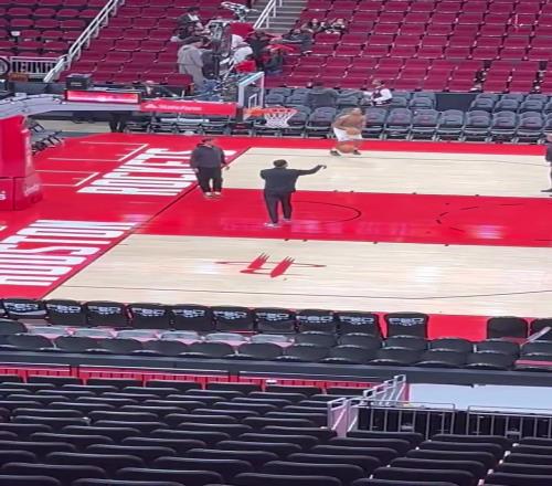 赛后,他独自在火箭主场进行加练。